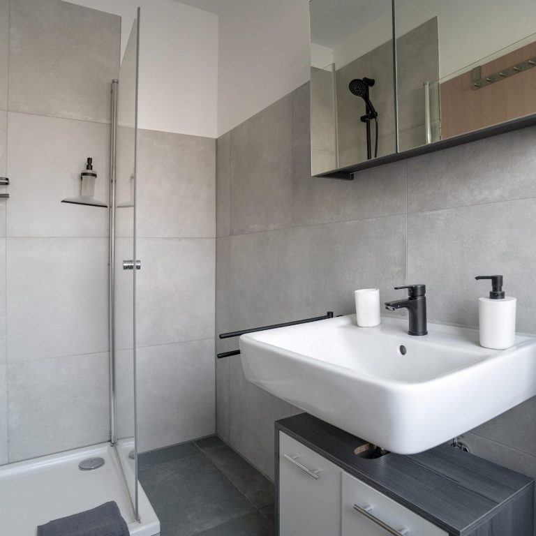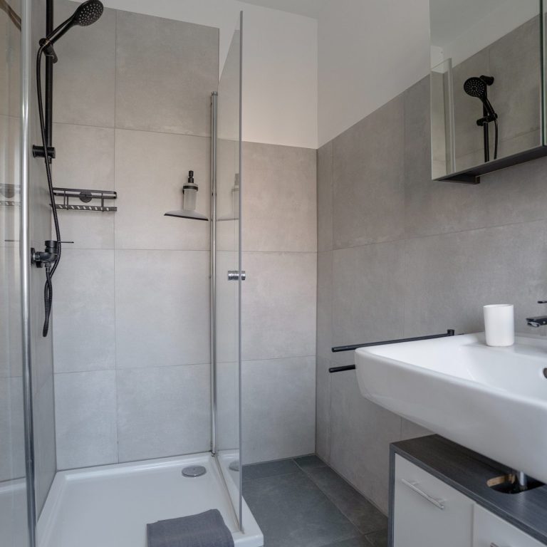 Urlaubsküche benötigen (z.B: Senseomaschine, Spülmaschine, Kühlschrank, Ofen, uvm.) – perfekt, um sich selbst zu versorgen. Das moderne Badezimmer ist mit Dusche, Waschbecken und WC ausgestattet und bietet frischen Komfort. Ein zusätzlicher Abstellraum sorgt für Ordnung und Platz.